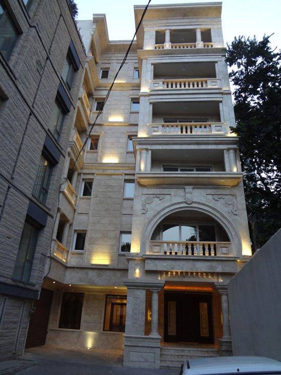 - شامل ۶ طبقه مسکونی، هرطبقه شامل ۲ واحد با متراژهای ۱۵۰ و ۲۲۵ متر مربع، یک طبقه همکف با