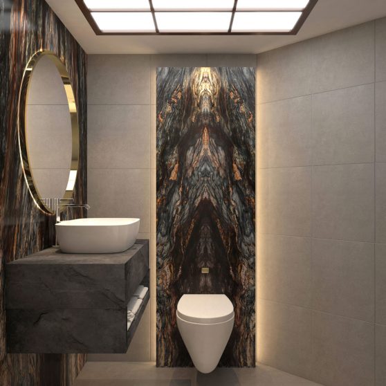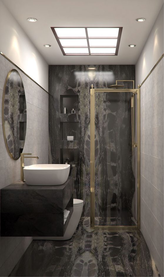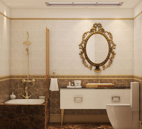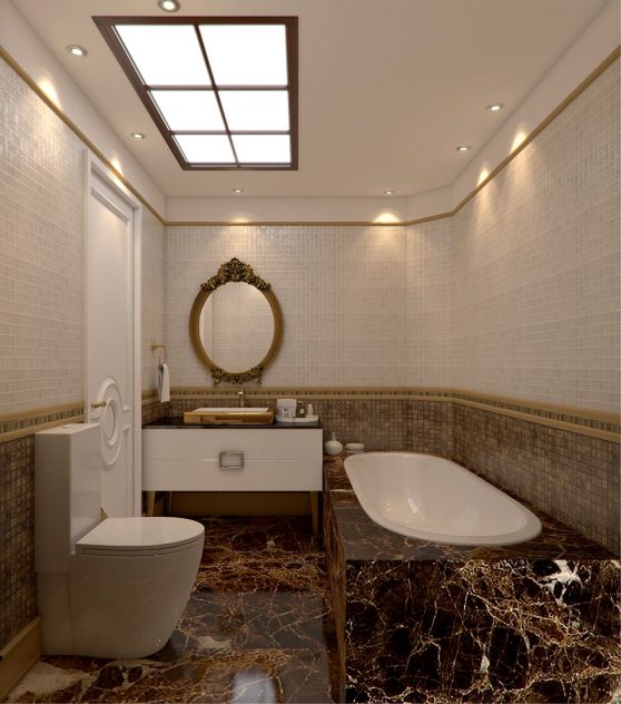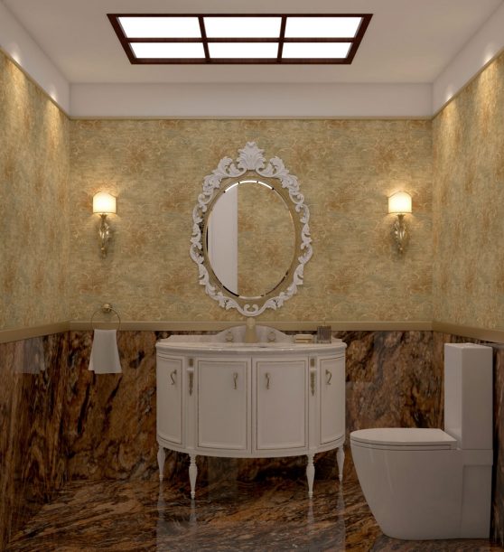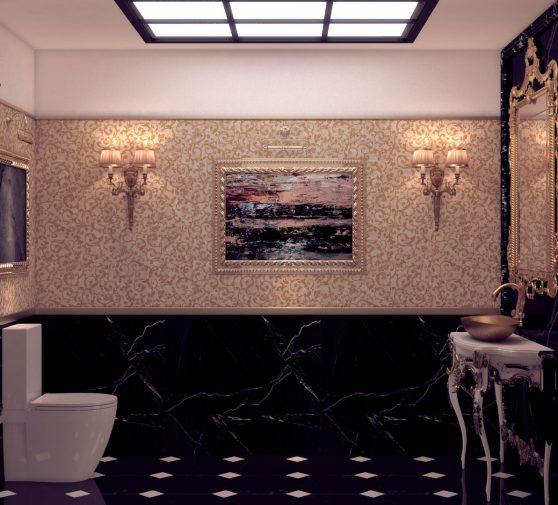 در بخش سرویس های بهداشتی از سرویس های وال هنگ اسپانیایی تماما توکار و روشویی و شیرآلات آلمانی استفاده شده است.