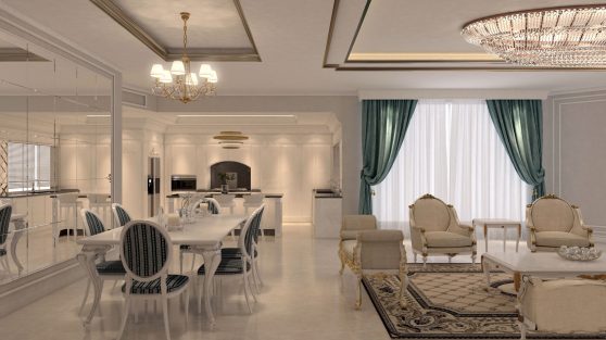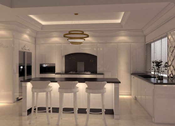 سیستم آشپزخانه مرکزی از جنس کلایف ایتالیا با صفحات کوارتز برای هرواحد جداگانه بصورت نیمه فرنیش از محصولات بوش آلمان یا میله ایتالیا در نظر گرفته شده است.