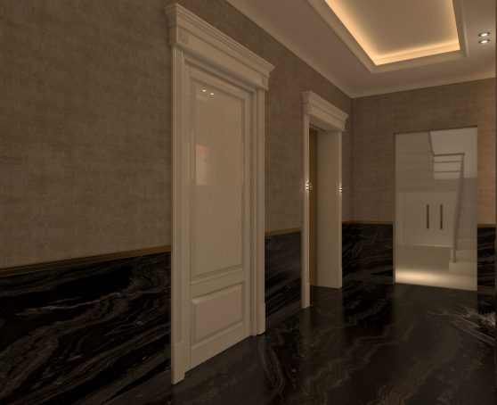 متریال استفاده شده در کف سالن از سنگ های لته ترک به صورت ۸۰ در ۸۰ و خمچنین برای سرویس های بهداشتی تلفیقی از سنگ های ایتالیایی کاشی های روز اروپایی و کاغذ های دیواری بلژیکی و فرانسوی می باشد.